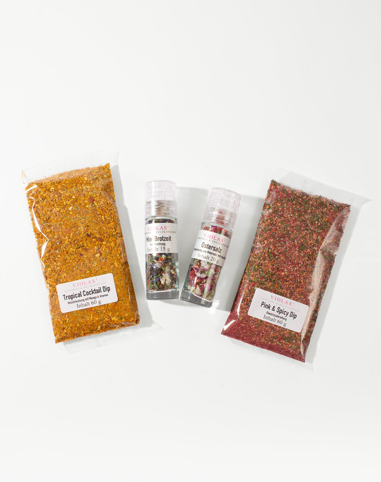 - VIOLAS’ Gewürzmischung »Tropical Cocktail Dip « – ein pikant-fruchtiger Dip für Gemüsesticks oder zu gebratenen Shrimps.