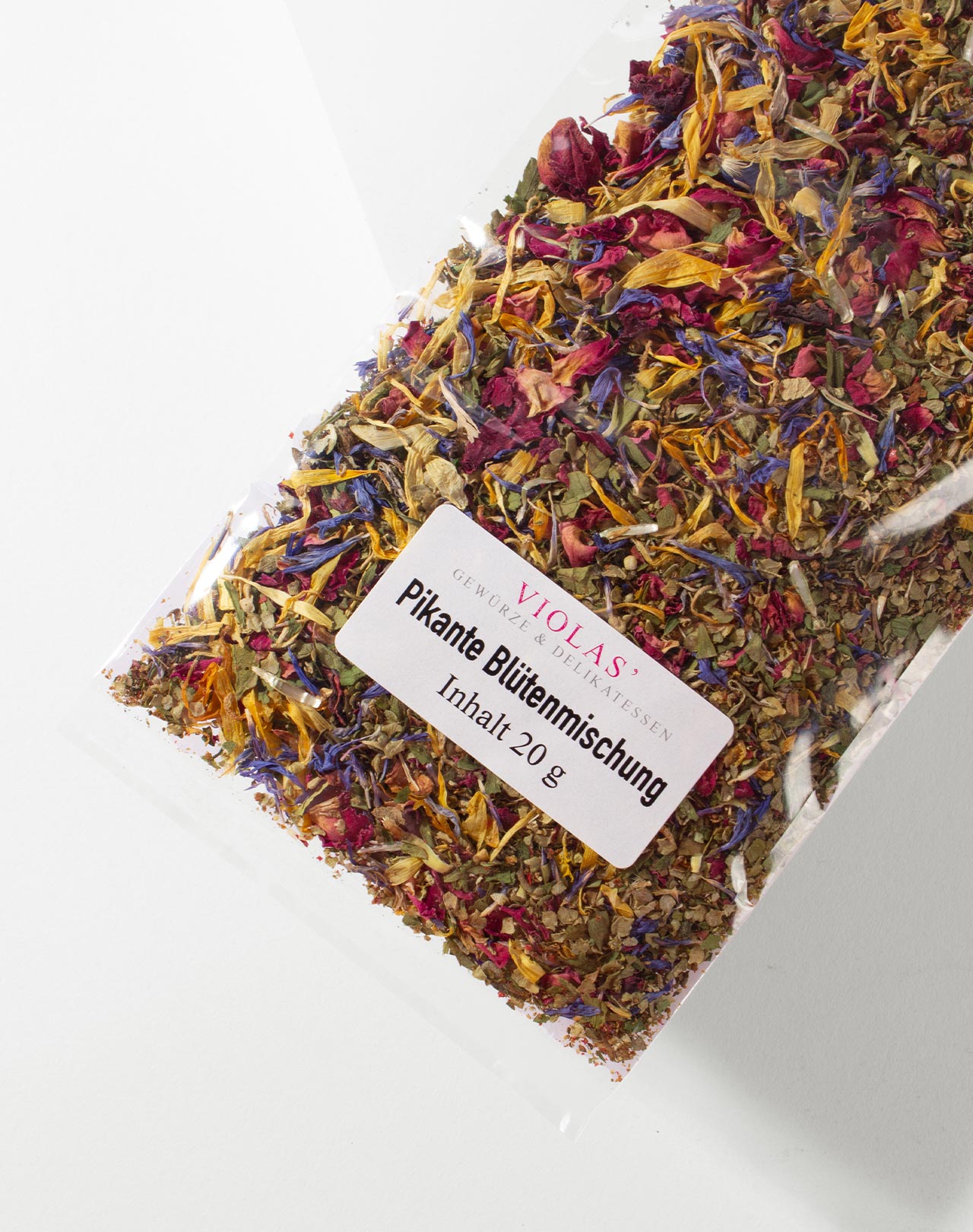 Diese besondere Blütenmischung mit den leicht scharfen Noten von grünem und rosa Pfeffer ist allein schon optisch ein wahrer Augenschmaus. Die bunten Farben von Rosenblättern, Liebstöckel, Ringelblüten und Kornblumen geben Ihren Speisen aber nicht nur eine extravagantes Erscheinungsbild, sondern verleihen ihnen auch eine angenehm süß-pikante Note.