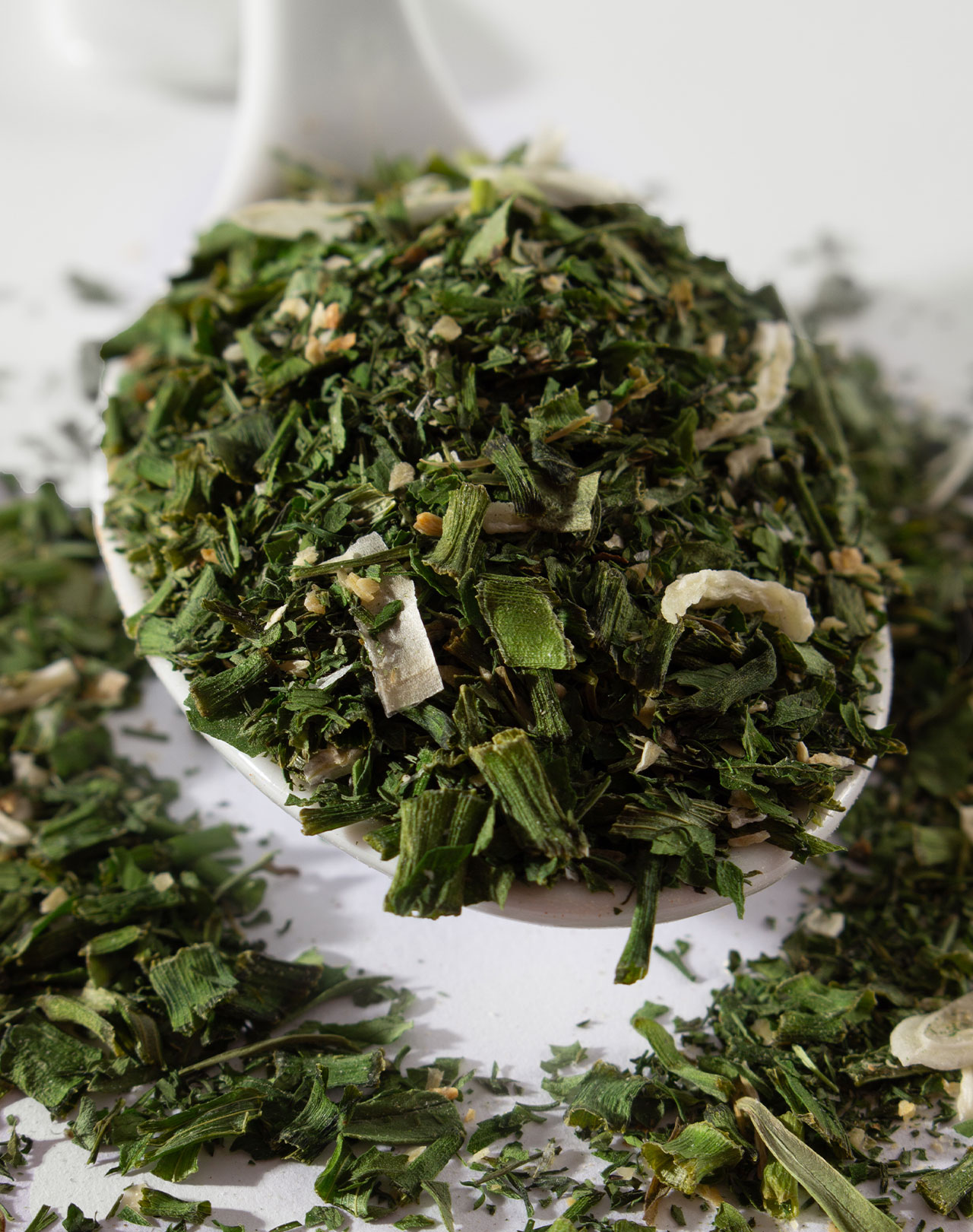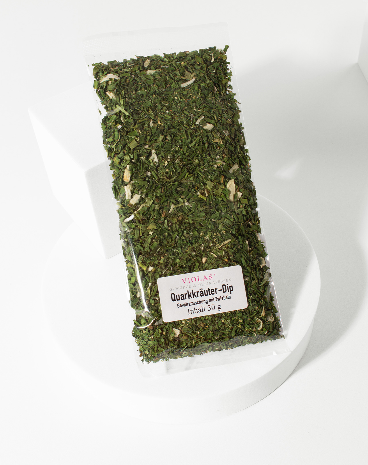Diese Mischung enthält Gartenkräuter wie Schnittlauch, Petersilie, Kerbel, Dill und Estragon. Mit ihnen ist schnell ein leckerer Kräuterquark hergestellt, der hervorragend zu Pell- oder Bratkartoffeln passt. Rührt man die Kräuter in Crème fraîche oder Frischkäse, erhält man einen wunderbaren Brotaufstrich oder Dip für Gemüsesticks. Mit dieser vielseitigen Kräutermischung lassen sich außerdem auch Salatdressings würzen.