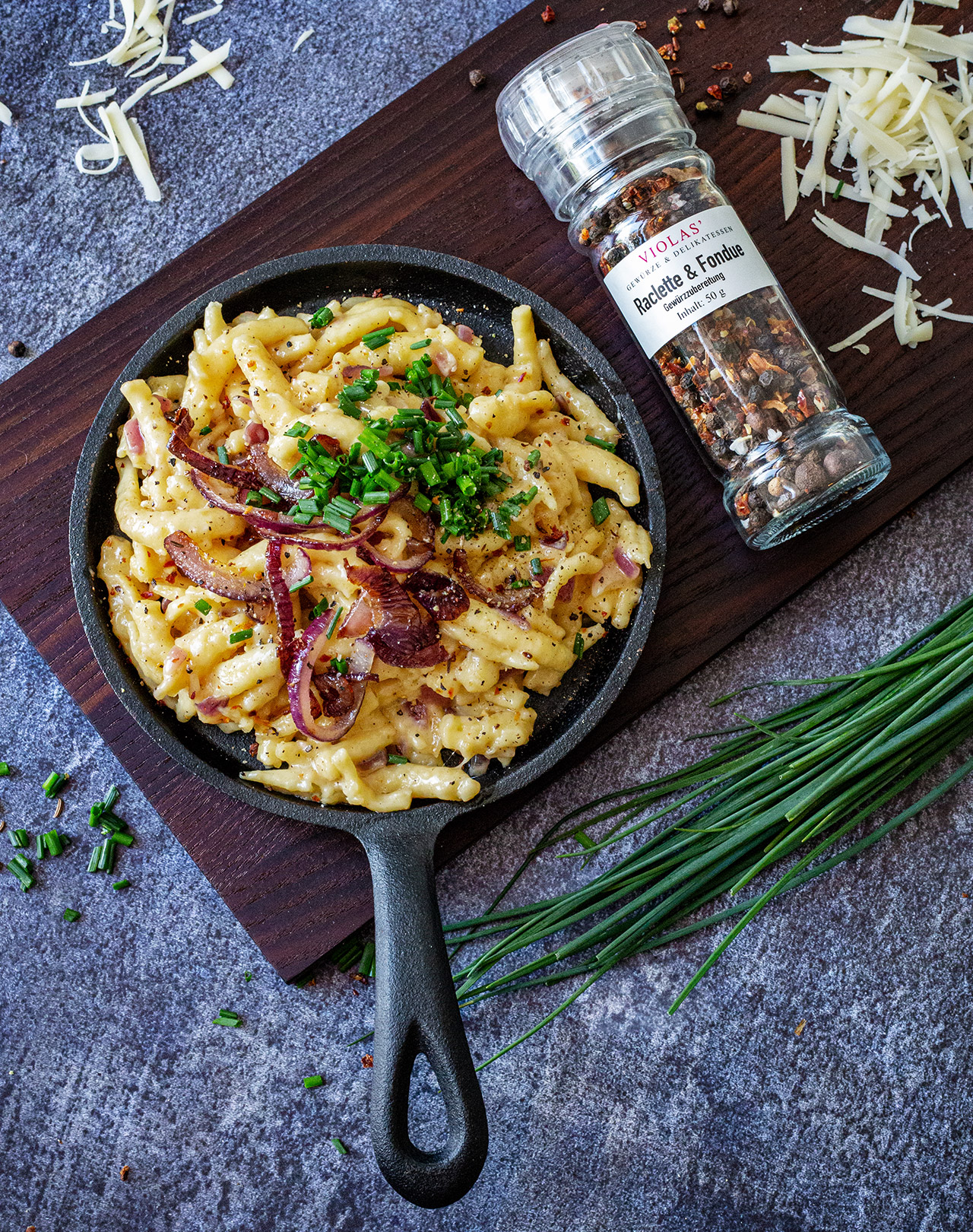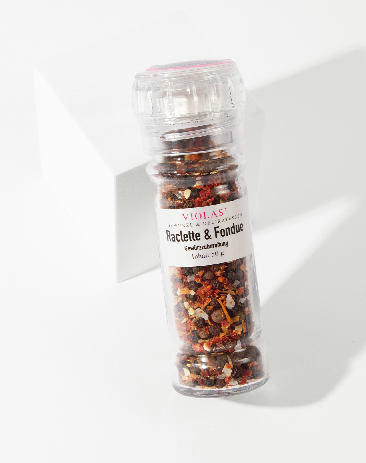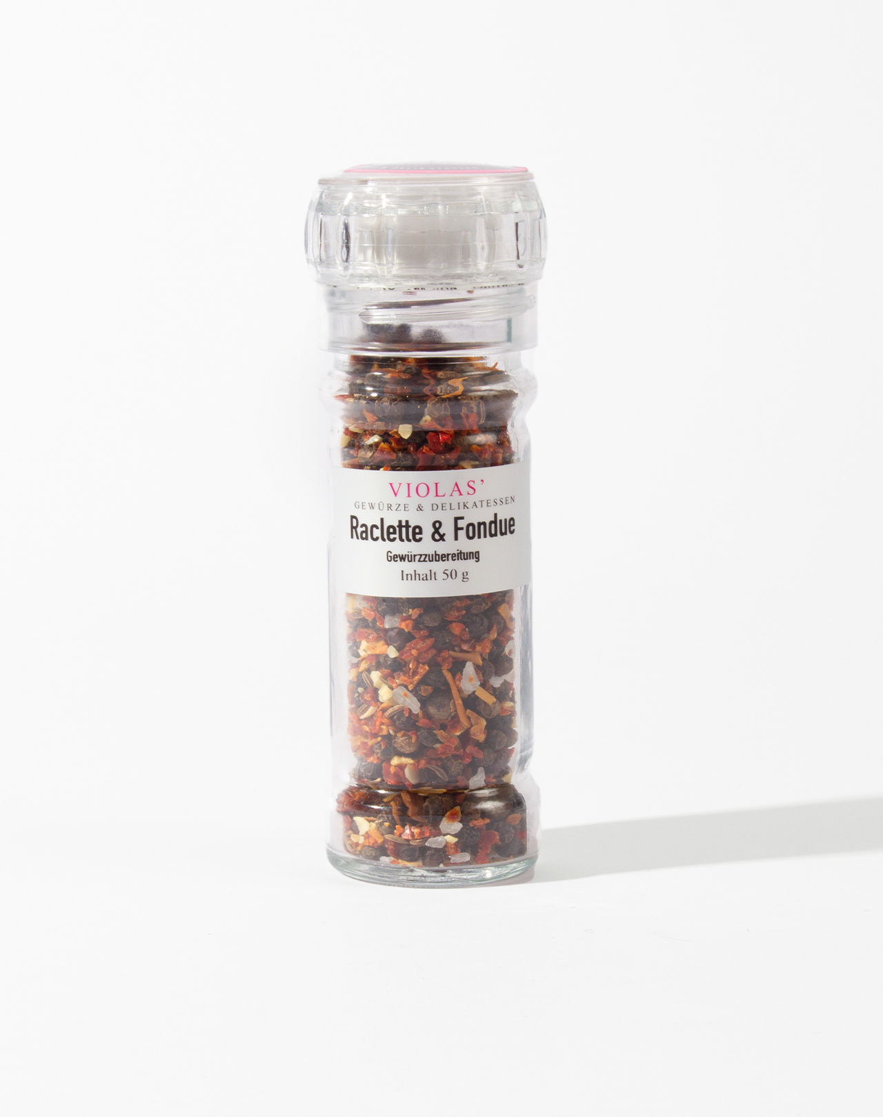 Der Tisch biegt sich! Bei Fondue und Raclette sind der Phantasie kaum Grenzen zu setzen, as man alles in die Pfännchen oder den Fonduetopf gibt und was man alles dazu genießen kann. Gut, wenn dann eine Mühle auf dem Tisch steht, in der Salz und Gewürze optimal abgestimmt sind, um Fleisch oder Gemüse zu würzen.