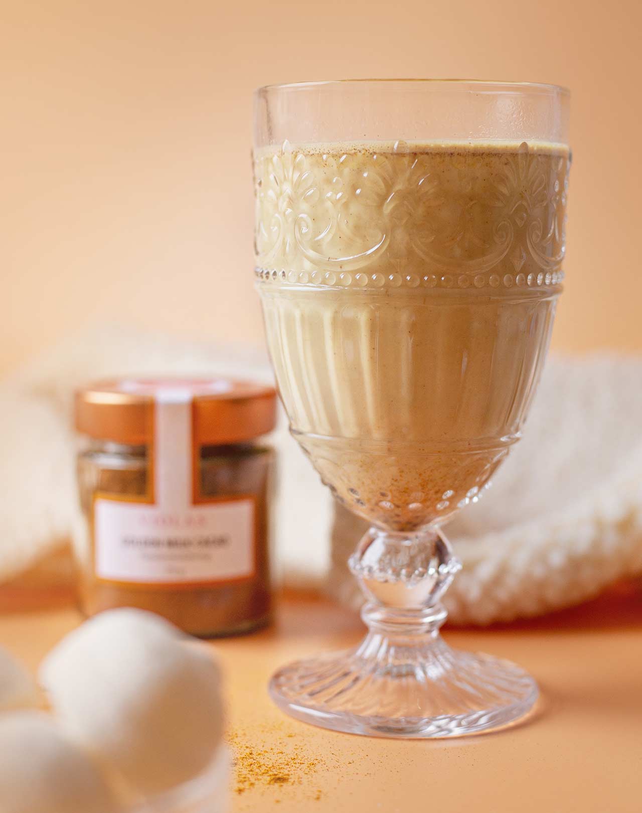 Unsere Empfehlung: 200 ml Vollmilch oder pflanzliche Milch mit ca. 1 TL der Mischung verrühren, vorsichtig erhitzen und heiß genießen.