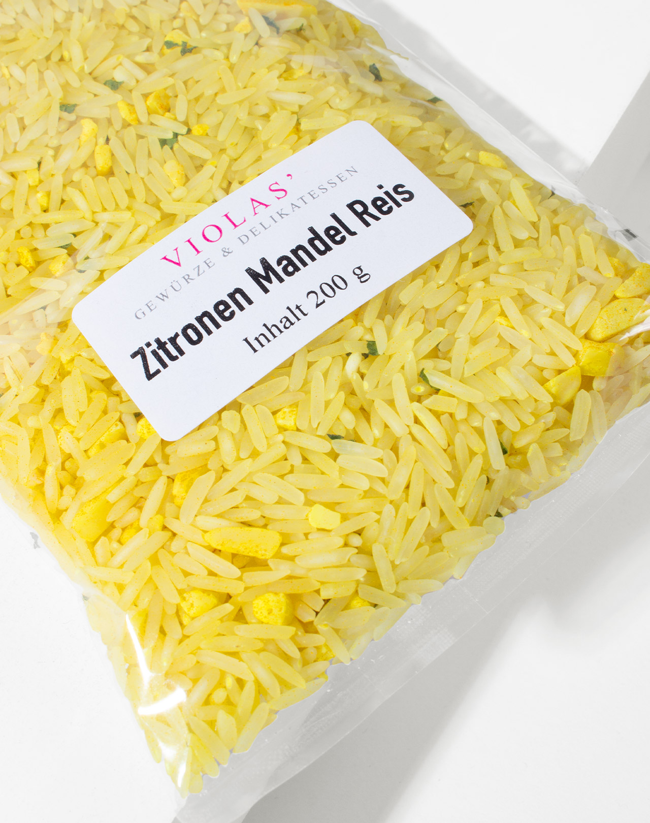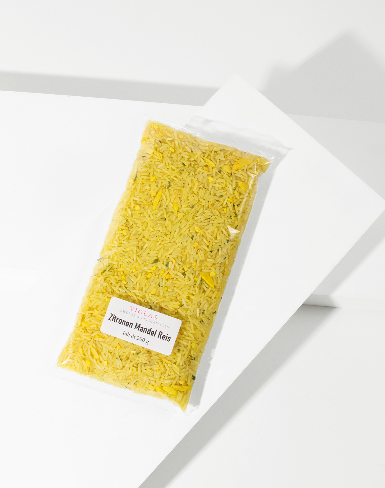 Eine elegante Mischung aus aromatischem Basmatireis mit Mandeln und der frischen Note von Zitronen als wunderbare Ergänzung zu Fisch und Geflügel, aber auch zu feinen Gemüsen wie Spargel oder frischen Erbsen. Ein Hauch Exotik erhält der Reis, wenn man ihn mit Kokosmilch und einem Spritzer Zitronensaft abschmeckt.
