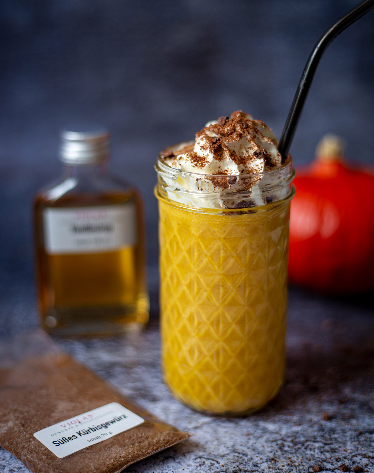 Kürbis mal anders. Kürbis kann man nicht nur herzhaft genießen, er eignet sich hervorragend für die Zubereitung von süßen Speisen, wie etwa Desserts, Kuchen oder sogar Marmeladen. Diese warme Gewürzmischung aus Rohrzucker, Kakao, Zimt, Macis und Ingwer machen aus dem Kürbisfruchtfleisch eine Süßspeise mit feinen Geschmacksnoten.