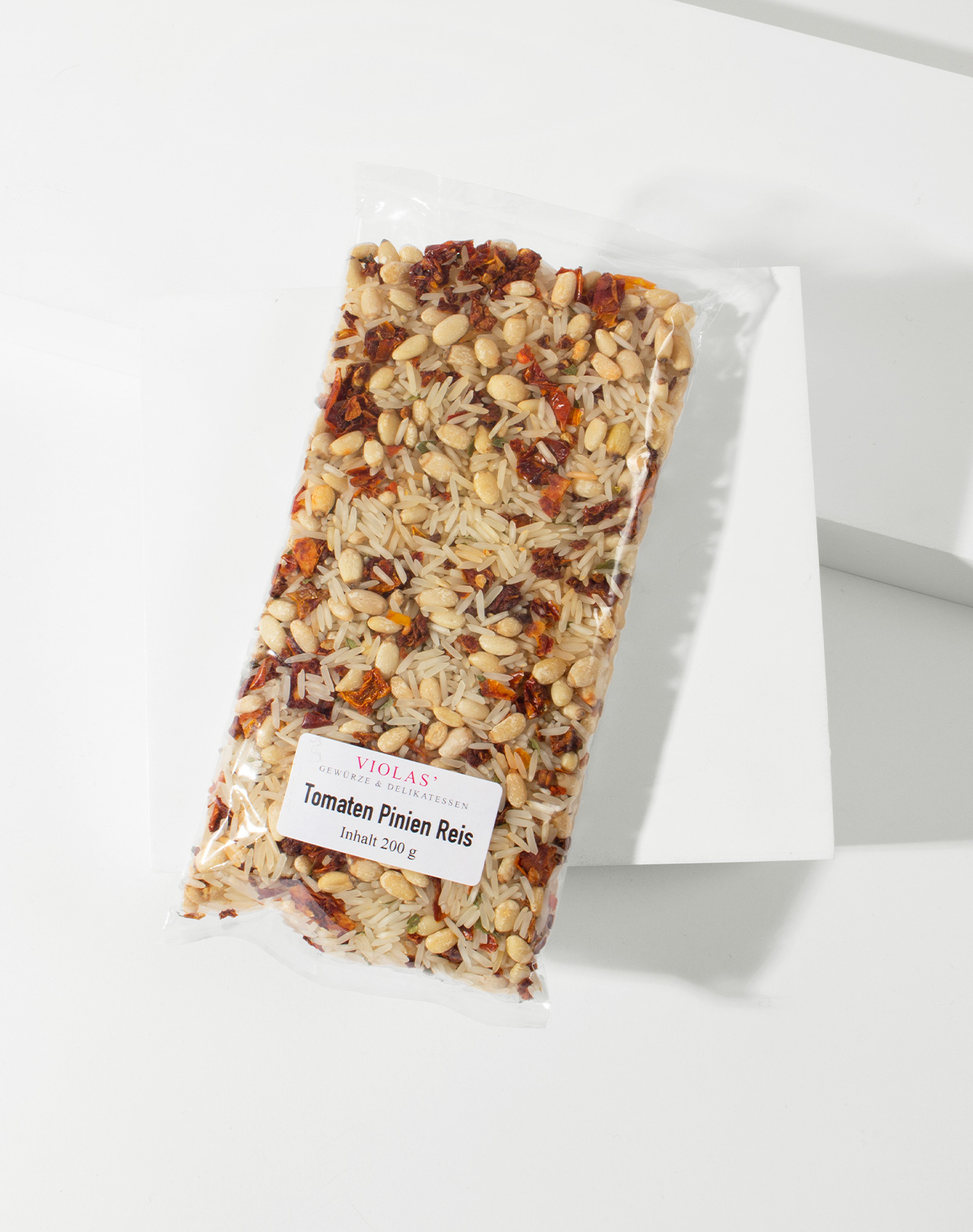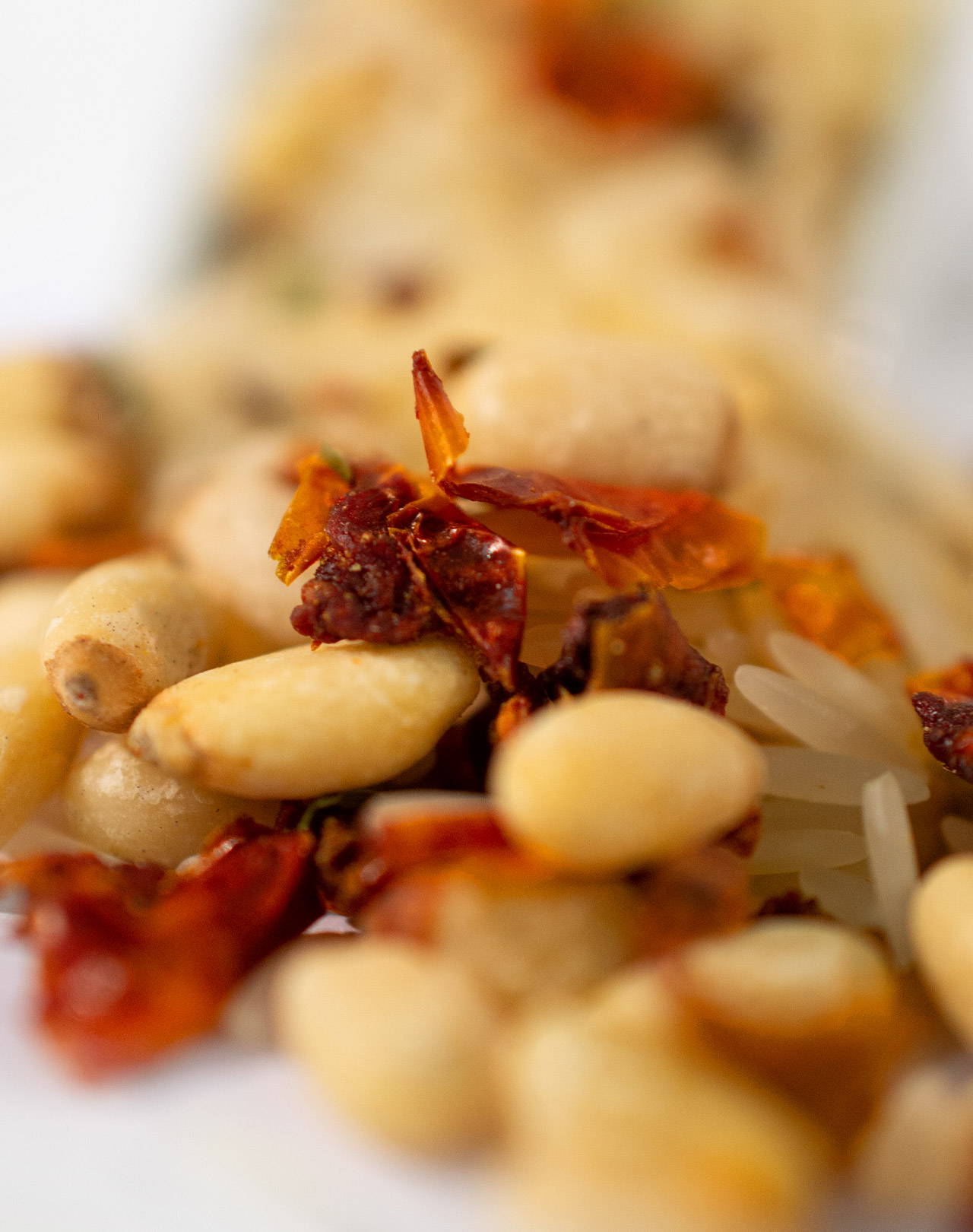 Basmatireis 85%, Pinienkerne 8%, Tomatenflocken, Petersilie, Chili