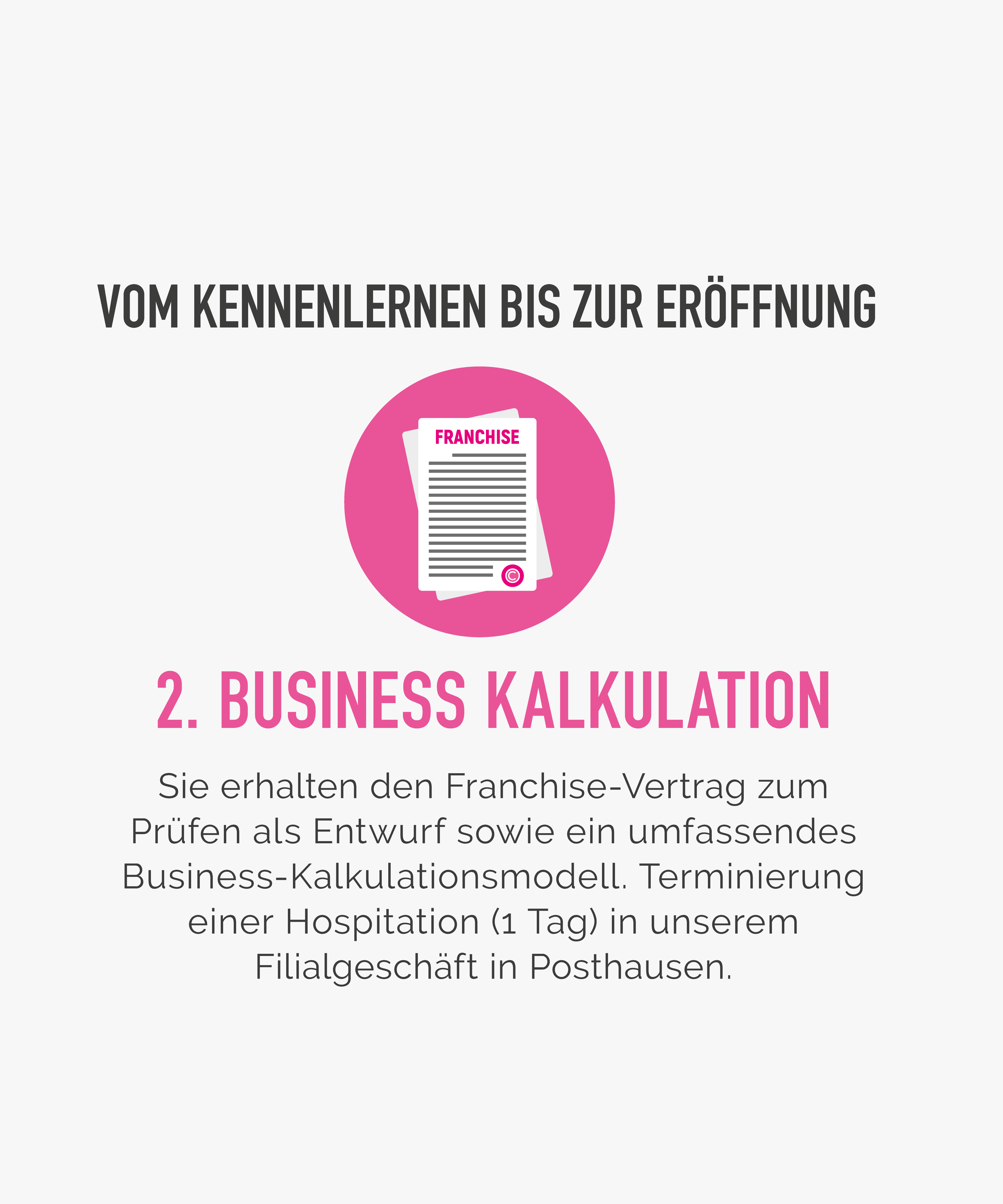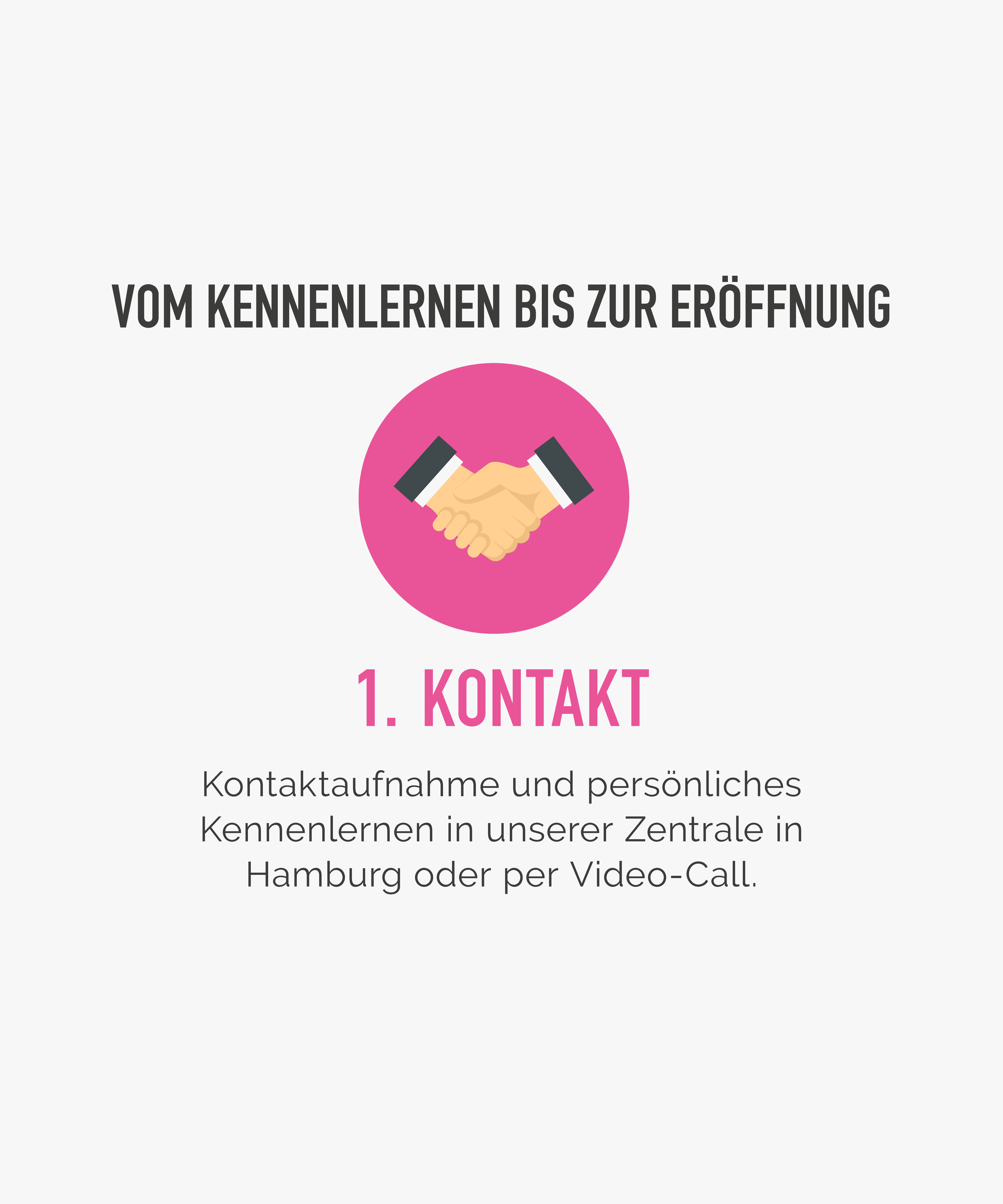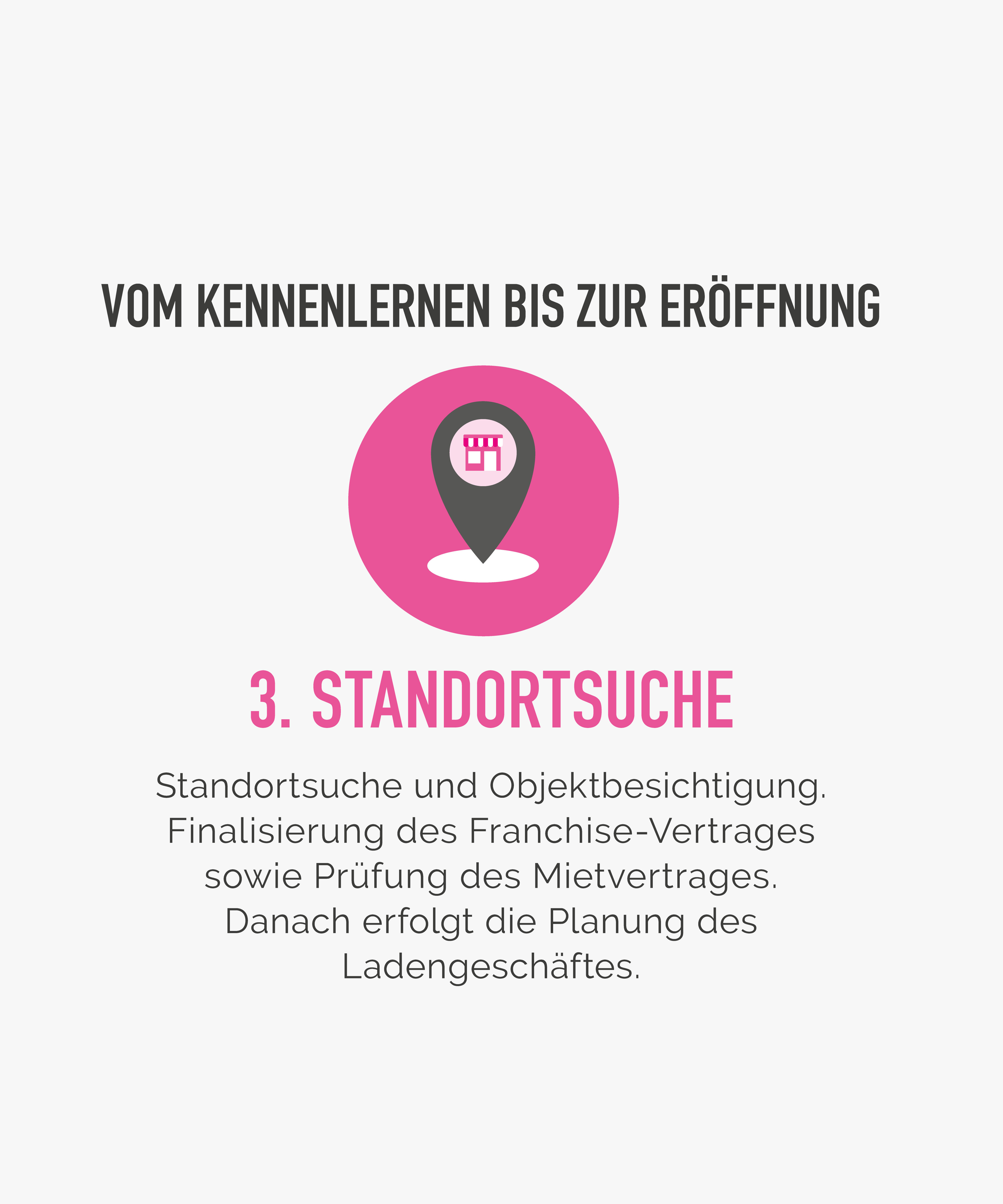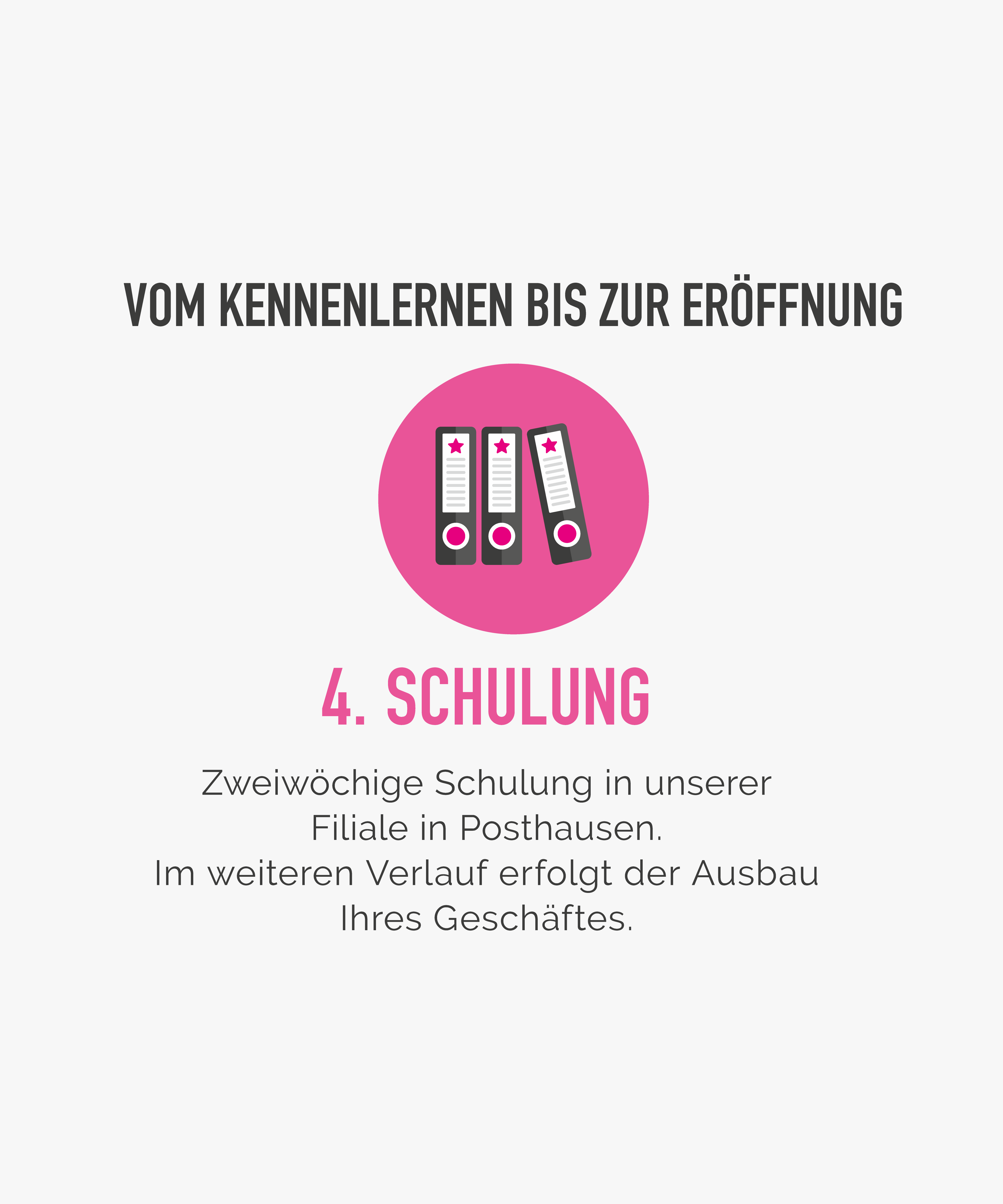 Unsere Mitarbeiter in der Systemzentrale sind ein eingespieltes Team, das Hand in Hand arbeitet. Nur so schaffen wir es innerhalb von sechs Wochen nach Vertragsunterzeichnung einen fertigen Store am Markt zu platzieren. Darauf sind wir stolz, denn wir setzen auf kurze Entscheidungswege ohne unnötige Wartezeiten. Das hilft Ihnen, Ihren Traum von der Selbstständigkeit umgehend zu realisieren.