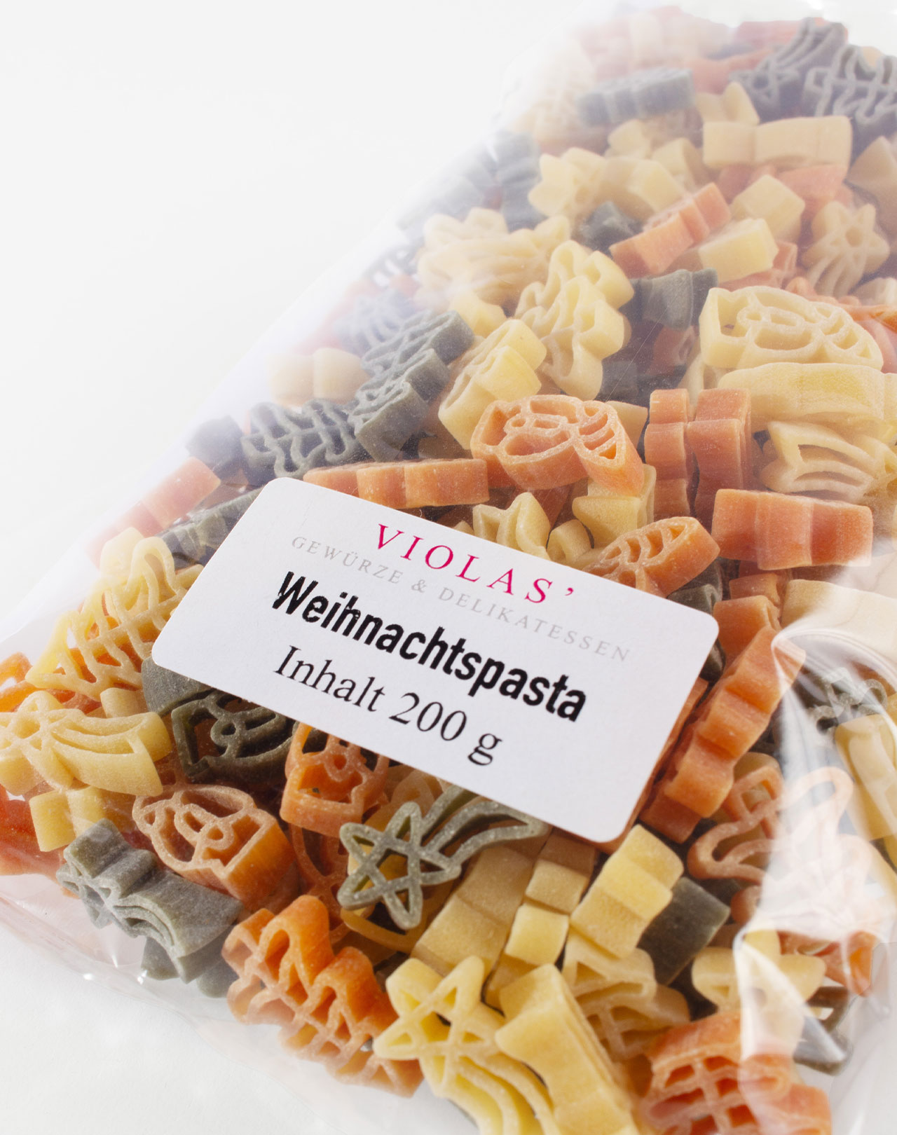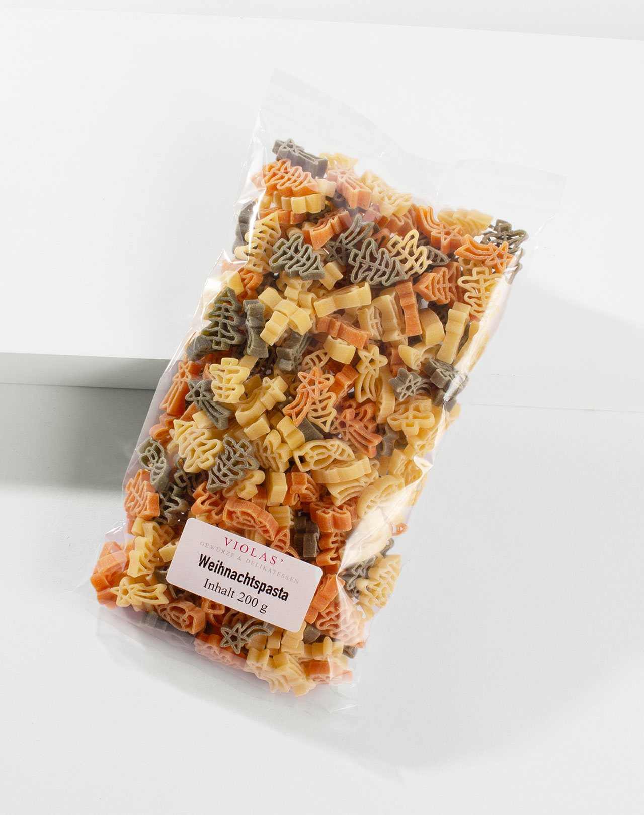 Bringen Sie weihnachtliche Stimmung in Ihre Küche mit unserer Weihnachtspasta! Die liebevoll gestalteten Nudeln in festlichen Formen – Weihnachtsbäume, Weihnachtsmänner und Sterne – sorgen nicht nur bei Kindern für Begeisterung. Perfekt für festliche Gerichte in der Adventszeit oder als besondere Überraschung auf dem Weihnachtstisch. Ob als kreatives Mitbringsel oder für den eigenen Genuss: Unsere Weihnachtspasta bringt Freude und Genuss in jede Mahlzeit!