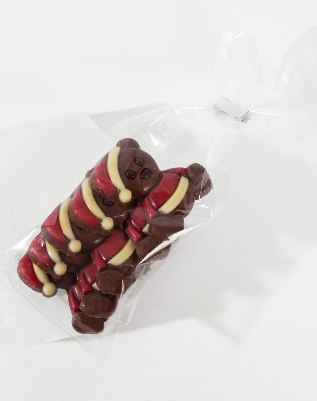 Süßes für die Festtagstafel: Kleine süße Weihnachtsbären aus dekorierter Vollmilchschokolade.